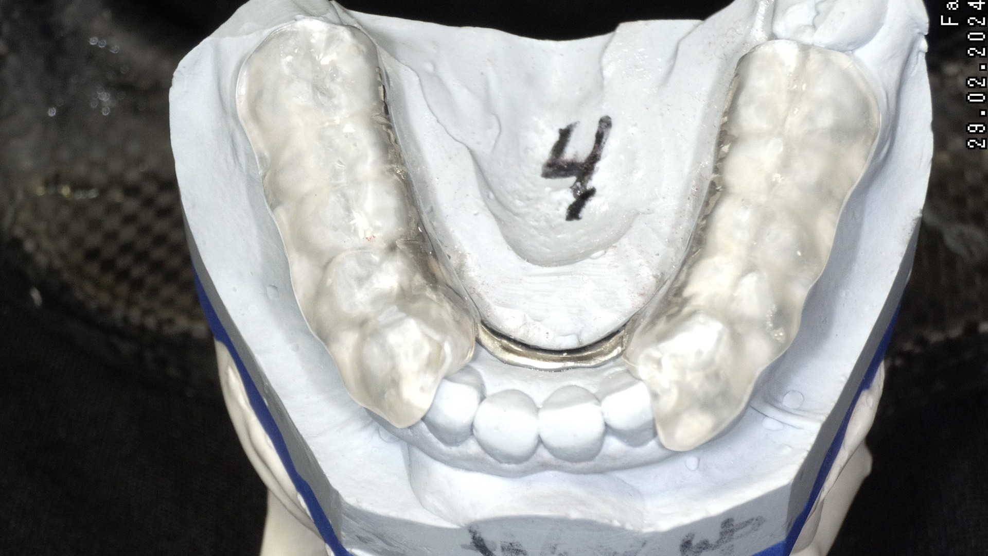 Dank unseres Theratec-Bissnahme-Systems und unseres hochmodernen Labors können wir große Restaurationen mit Bisshebung sicher und effizient planen und durchführen. Vor der eigentlichen Restauration führen wir eine Schienentherapie durch, um die Bisshebung kontrolliert zu testen und die Muskeln und Bänder auf die zentrische Position zu trainieren. Dieses System ist zertifiziert, und wir verfügen über das nötige Fachpersonal, um mit Ihnen diese Restaurationen erfolgreich umzusetzen.